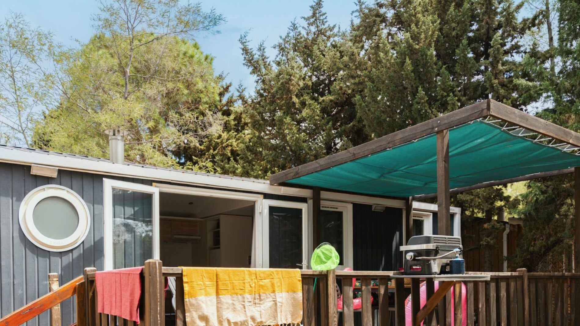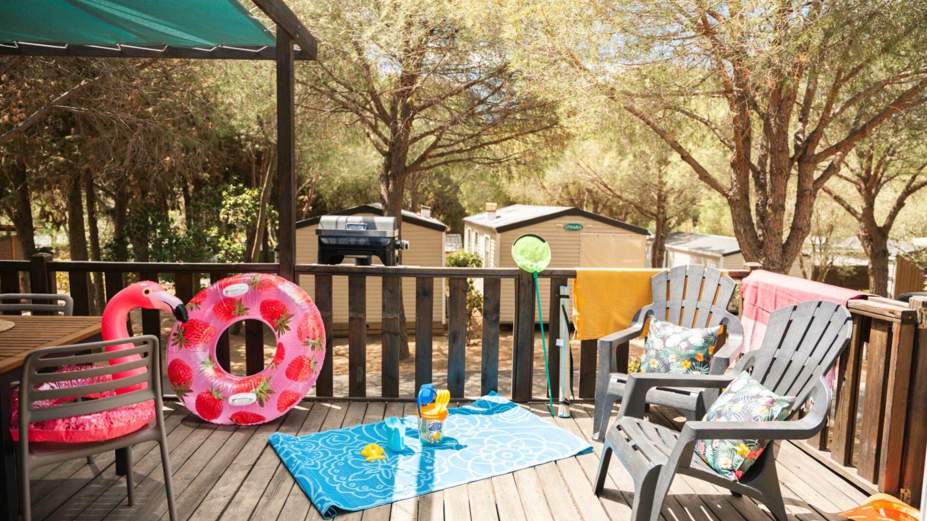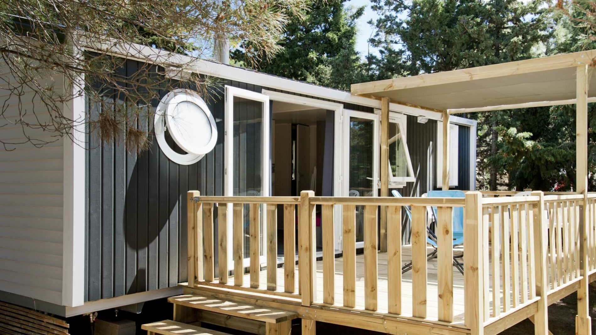 34 m² + 20m² Überdachte Terrasse, ein Doppelzimmer (160 x 200), zwei Zimmer mit 2 Einzelbetten (80 x 190), Sitzecke, Große komplett ausgestattete Küche mit Insel, Badezimmer mit XXL Dusche (100x 80), Waschbecken, 1 separat WC. Gartenmöbel.